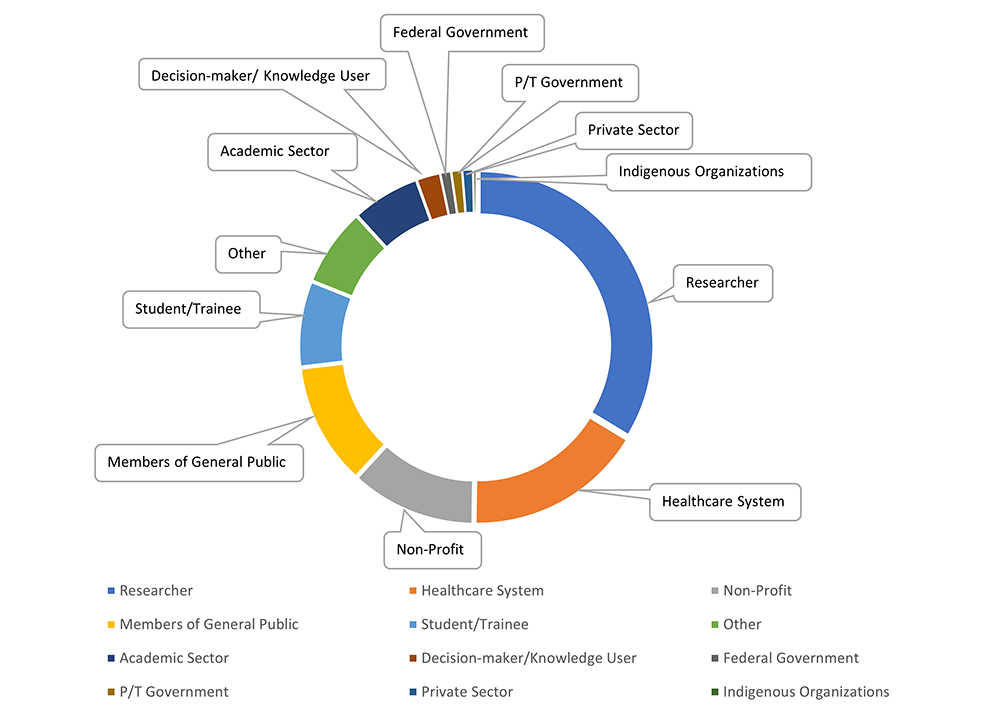 We heard from people living in all provinces and territories across Canada. Three hundred and twenty respondents, including researchers, people working in health care, people working at non-profit organizations, provincial/territorial government employees, students, members of the general public, members of Indigenous (First Nations, Métis, or Inuit) organizations, decision-makers and knowledge users shared their feedback through a survey and online forums.