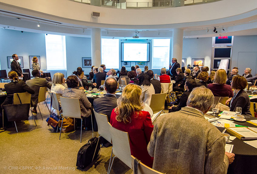 The Community Based Primary Health Care Innovations (CBPHC) 4th Annual Meeting was co-hosted by the CIHR Institutes of Population and Public Health (IPPH) and Health Services and Policy Research (IHSPR). The meeting brought together CIHR funded CBPHC Innovation Teams, New Investigators and Applied Public Health Chairs, and representatives from national health care organizations including CIHI, the Canadian Medical Association and the College of Family Physicians of Canada. This meeting provided participants an opportunity to critically reflect on progress, achievements, and impacts arising from Innovation Team’s programs of research, including capacity building and knowledge translation activities. The meeting also provided a forum for knowledge exchange, critical debate and collaboration between Teams, salary awardees, decision-makers, and partners with a common interest.