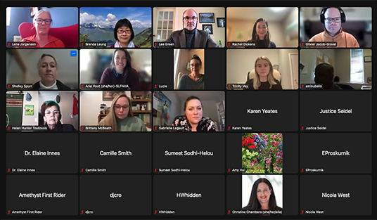 Members from the 11 applicant teams were present for the Workshop, which included outstanding presentations from Dr. Debbie Martin, Professor, Dalhousie University, and leader of the Wabanaki-Labrador Indigenous Health Research Network and the Atlantic Indigenous Mentorship Network. Debbie provided two presentations during the Workshop; the first was focused on community engagement, and the second provided grant-writing tips for applicants. We were also privileged to have Harlan Pruden, Indigenous Knowledge Translation Lead at Chee Mamuk, an Indigenous health program at British Columbia Centre for Disease Control and Danielle Nadin, Lead for Science Strategy, CIHR-Institute of Gender and Health, present on Sex and Gender-Based Analysis Considerations in Indigenous Health Research.