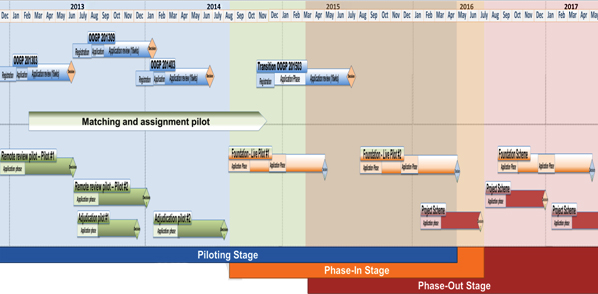 CIHR will conduct various pilot studies and tests for the new peer review process between early 2013 and mid-2016. These pilots will assess the proposed design elements, new processes, and systems to support the processes. If significant changes are required to the design as a result of the pilots, timelines for the overall transition will be adjusted.