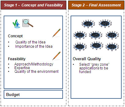 The Project Scheme is designed to capture ideas with the greatest potential for important advances in health-related knowledge, the health care system, and/or health outcomes, by supporting projects with a specific purpose and defined endpoint. There will be two Project competitions per year. As a result of the feedback we received, we re-designed the competition process for the Project Scheme to have a two-stage review process. The assessment criteria for this scheme will be based on the quality of the idea, and the project's feasibility. In Stage 1, all applications will be reviewed remotely by five reviewers. In Stage 2, face-to-face meetings will be held to integrate the results of the independent reviews, and to discuss "grey zone" applications, with particular emphasis on applications with large variances in independent reviewer rankings.