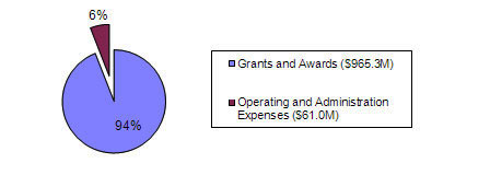 Allocation of CIHR Expenses between Grants and Operating Expenses ($1,026M)