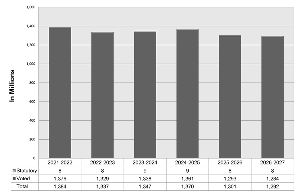 The increase from 2021–22 to 2023–24 results from the extension of temporary positions created to address immediate operational requirements and support initiatives announced in Budget 2021 and Budget 2022.