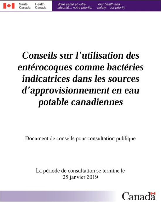Conseils sur l’utilisation des entérocoques comme bactéries indicatrices dans les sources d’approvisionnement en eau potable canadiennes - Document de conseils pour consultation publique